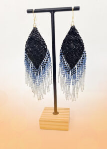 Si vous avez déjà un peu d’expérience en tissage de perle vous pourriez essayer ce nouveau modèle triangulaire. Il combine deux techniques : la Peyotte